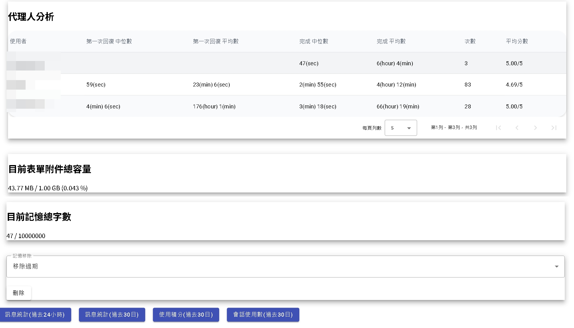 - 代理人統計: 客服人員的績效數據。